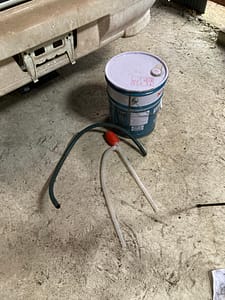I thought I filled it up 15 years ago, but the fuel gauge says it’s only half full.The gas tank of the WRXSTI (GC8) is 60 liters. Since there was only half of the gas left, I prepared two pails.
