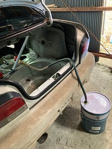 I drained the gasoline by looking into the trunk. The work went smoothly.