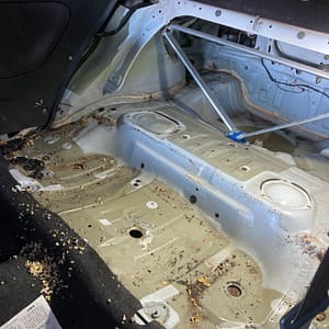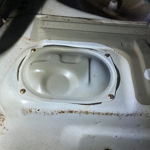 燃料ポンプを外してそこからポンプで吸引します。なので後部座席を外して運転席側にある燃料ポンプを外します。最初に楕円形の蓋を外します。