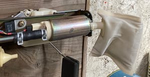 外した燃料ポンプはストレーナーが真っ黒です。11万キロ、ノートラブルでした。壊れる前に今回交換します。