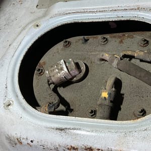 運転席側の後部座席の下にある楕円形の蓋を開けると燃料ポンプがあります。燃料タンクからボルトが8本出ていて8ミリのナットで固定しています。ボルトを折らないように慎重に作業します。ホースを外す際に、今回は購入したホースプライヤーを使いました。ホースプライヤーは先が丸くなっています。ホース全周に力が伝わるのでスムーズに外すことができました。