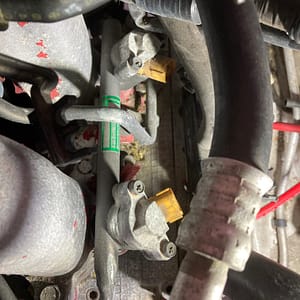 次ににインジェクターを抑えているキャップを外します。ボルトにはプラスが切られていますが、おそらく舐めてしまうので、8ミリのラチェットを使いました。ここもボルトを舐めないようにシリコンスプレーを使いながらゆっくりやりました。
