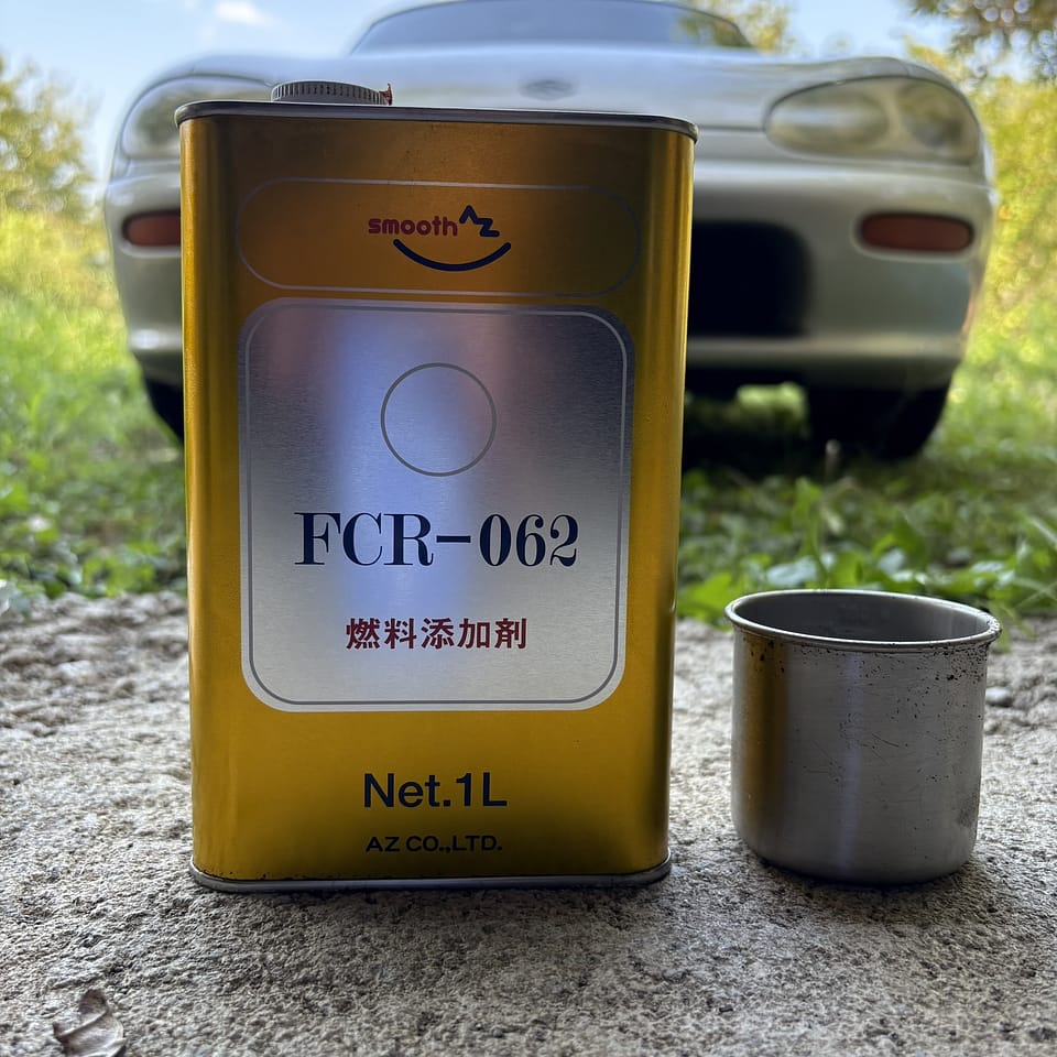 The Cappuccino’s gas tank is 30L. According to the product description for FCR-062, for gasoline vehicles, 150mL is required for 40-60L, so I added 80mL.