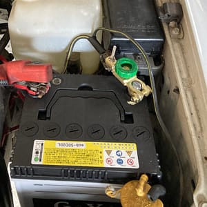 The terminal is attached to the negative side. I used another bolt to connect it for now. It’s a little long, so I’ll change it to something that fits better next time.